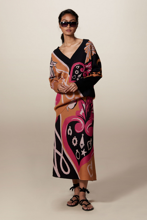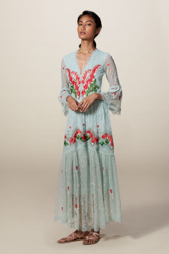 Temperley London 坦波丽伦敦 这一季的休闲服装的亮点包括魔法图案、金属贴压花朵的魅力,还有密密麻麻的印花、炼金图纸等。印花裙的特色是运用更多的同心圆符文模式。宽腿裤和女巫袍更显特色。花边的衣服和领子细节显示中世纪药剂师的酒壶和轨道的行星。心形亮片闪闪发光的衣服和裙子,更在最后照片中,一个是开放的武装连衣裤和皱褶的武装打扮,微亮片从不透明变成蓝色。